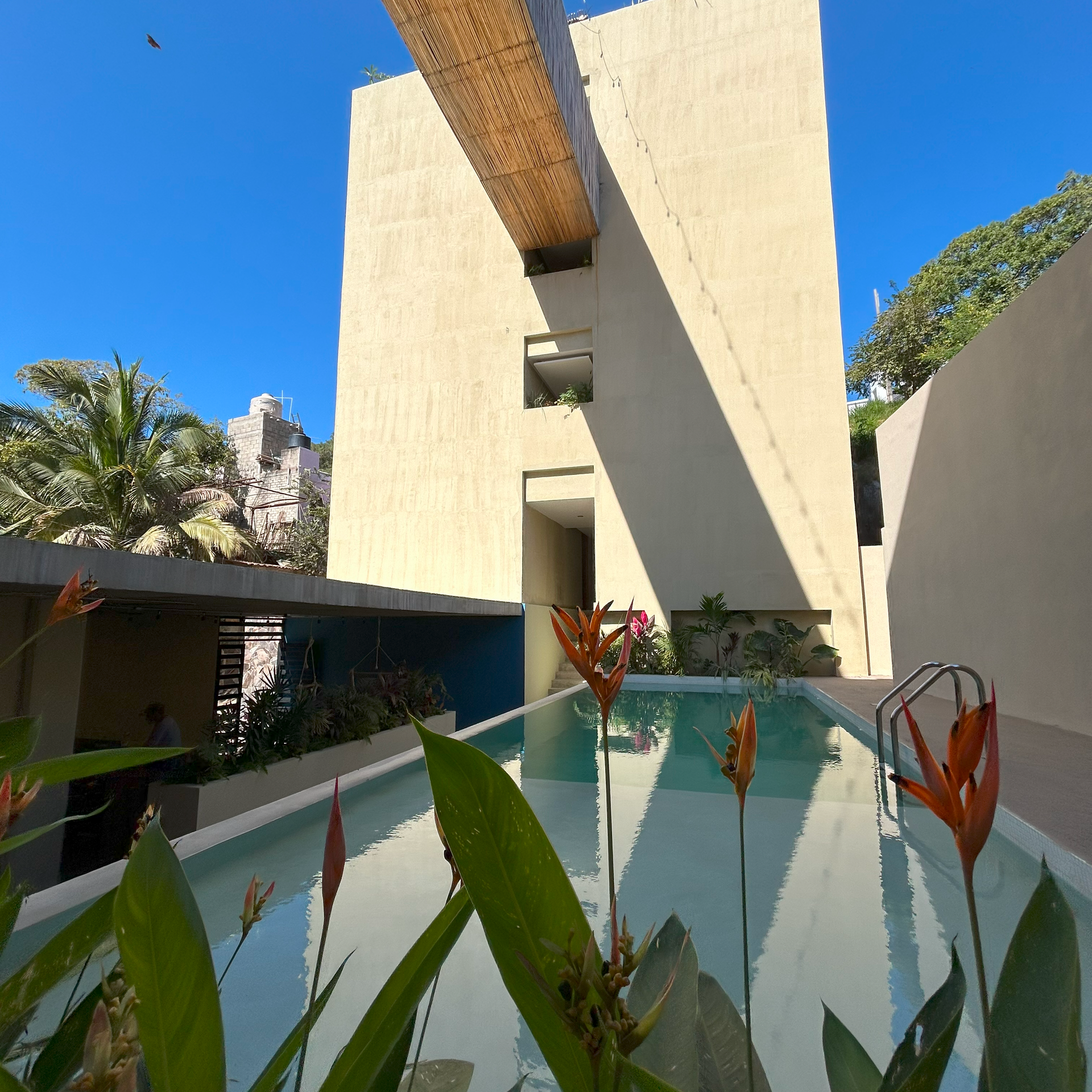 Terraza en la azotea con piscina infinita y vistas al mar.